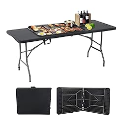 Generic Portable Folding Table 6ft Heavy Duty Plastic Foldable Table with Carrying Handle Outdoor Indoor Plastic Dining Table for Camping and Party Picnic, Black, Large