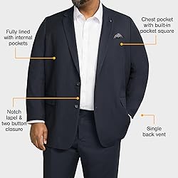 Johnny Bigg - Men's Suit Jacket with Two- Button Closure | Big and Tall Sports Coat for Men | Wrinkle Resistant Material | Classic Fit Blazer, 48, Naby