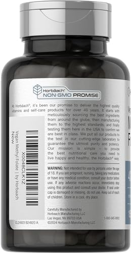 Horbäach Methyl Folate 400 mcg | 150 Vegan Capsules | Non-GMO, Gluten Free | Dietary Supplement