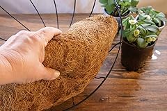 - Instead of buying all new hanging planters, replace the liners is a best choicef for you ! Brown coconut coir is a natural fiber made from the husk of ripe coconuts. One of the most popular products, are coconut fiber liners, which are commonly found and used in hanging baskets and planters. Features: Coconut liner for rope hanging planter basket keeps plants moist between watering. Natural brown in color and pre-formed coco liner made of 100% natural coco fiber. They can hold a great deal of water, releasing it slowly to allow plant roots to better take it up. These water saving coconut liners also provide good drainage. They’re porous too, allowing for good aeration. These liners are very absorbent, so if hanging baskets or planters should become too dry, they will quickly re-absorb water. The coconut husks used in coir contain potassium, copper, zinc and manganese -- all nutrients that benefit plant growth. The organic material of coconut coir contains a neutral pH (6.0-6.7) and small amounts of beneficial phosphorus and potassium. Tips: You may also want to consider adding in some water absorbing crystals or perlite to the potting mix as well to retain additional moisture. In times of excessive heat and windy conditions, especially with hanging baskets, this additional moisture is necessary to keep plants from drying out. Although coconut fiber liners hold and absorb water well, they are still porous and apt to dry out more quickly. Therefore, you should always check plants frequently to stay on top of their watering needs. Package includes: 2 x Coconut Liners for window boxes & planters