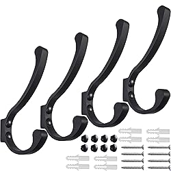 Coat Hooks for Wall, Heavy Duty Large Wall Hooks for Hanging Wall Mounted Metal Robe Hooks Utility Hooks for Coat, Scarf, Bag, Towel, Key, Cap, Cup, Hat (Black, 4 Pack)