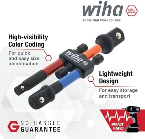 Wiha 70488 3Pc Color Coded 1/4" Socket Adapter 1/4 3/8 1/2