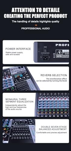- 【Studio level dual 7-frequency equalizer and 3-frequency mono equalizer】Accurate sound shaping: Dual 7-band graphic equalizer for main output+dedicated 3-band equalizer for each mono channel (bass/midrange/treble). Eliminate feedback, improve sound clarity, and fine tune instruments for recording studios or live environments.