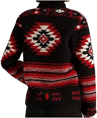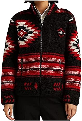 Ralph Lauren Women’s Jacquard Faux Shearling Sherpa Southwestern Jacket Large L, Black
