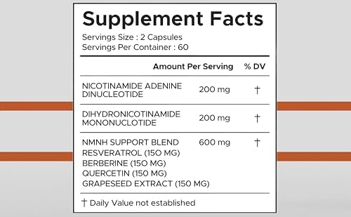 NMNH 1000mg – Advanced NMN Alternative with NAD⁺, Resveratrol, Berberine, Quercetin & Grapeseed – Boost Energy, Focus, Metabolism, Immunity, Skin, Cellular Health & Anti-Aging – 120 Caps