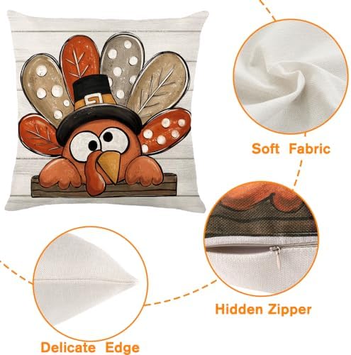 - Easy to Wear&Care: The Thanksgiving throw pillows is closed with a hidden zipper makes it easier to stuff the pillow/filler core.Well made and wrinkle-resistant, this pillow covers is very easy to care for and can be machine washed on a gentle cycle on low and tumble dried on low, but cannot be bleached.