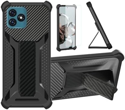 Case for Blackview Oscal C20 Pro Phone Case Stand Cover [with Tempered Glass Screen Protector] Hybrid Case [Folding Support Magnetic] [Frosted Anti-Fingerprint] Black
