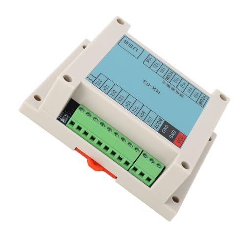 1. SIMPLE TO USE: No hardware is required to test program function on the computer. Visually see how the program runs and quickly locate problems!2. WIDELY USED: Support various device sensors, position switches, NPN type proximity switches, magnetic induction switches, etc.3. MULTIPLE CONTROLS: Featuring 8 inputs and 7 outputs, the output can control relays, cylinder solenoid valves, motors, etc.4. VERSATILE APPLICATION: Can be used in various industrial automation control applications, such as printing, , plastics, building materials, home furnishings, packaging, textiles, food, metallurgy, etc.5. WIDE COMPATIBILITY: Supports for and for systems, not supports for systems, supports for Android phone, not supports for IOS.Spec:Item Type: Programmable Logic ControllerMaterial: ABSModel: RX 03Power Supply: 12-24V DC stabilized power supply, the power supply needs to be provided by oneselfComputer Programming: Supports for and for systems, not supports for systems, download via USB cable (not included)For Android Phone Programming: Download requires an OTG adapter and USB cable, the OTG adapter needs to be provided by oneselfFor IOS Phone: Not supportHow to Use:Take out the product and use directly.PackageList:1 x Programmable Logic Controller