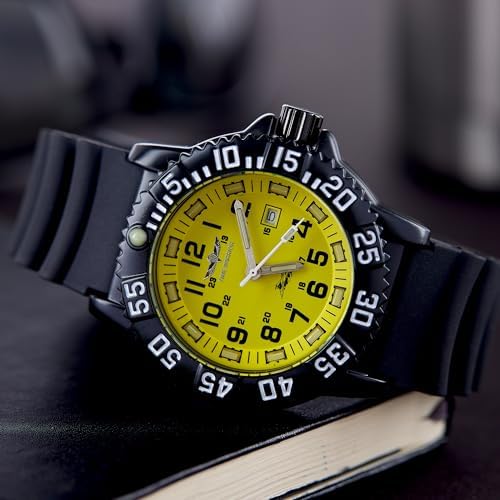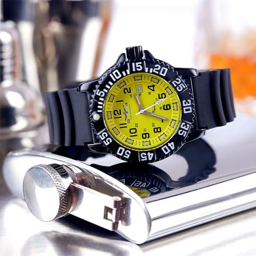 Diving Military Watch Special Forces Luminous, Stainless Steel Tactical Night Watches for Men, Men's Watches. (Yellow Dial Rubber Band)