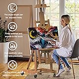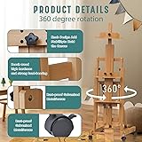 High Quality Material: The easel for painting is made of high quality beech wood,which is sturdy and durable to provide you with stable support during your creations,the carefully polished rounded corners ensure safety and the natural texture of the Art Easel adds to the creative atmosphere Exquisite Design: This beautifully designed Artist Easel has three sliders to adjust for different canvas sizes (up to 77 inches),and two painting spaces on the easel to accommodate two canvases at once.You can dry your painting while working on another one,and you can also place a reference chart to allow you to focus more on your work! Diversified Painting Needs: By loosening and tightening the knobs on both sides of the easel for painting,you can easily achieve the height adjustment and angle adjustment, between horizontal and vertical angle can be perfectly matched to your painting needs,it is the ideal choice for artists of oil,watercolour, pastel, airbrush or acrylic Easy To Move And Store: The art easel for adults base is equipped with four lockable wheels for easy mobility and to hold it in place while painting. The Artist Easel can be folded for easy storage and transport,suitable for both indoor and outdoor art creation Premium Service:If there is any problem with the art easel,please feel free to contact us and we will spare no effort to solve it for you