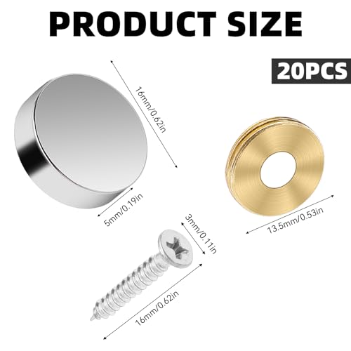 Mirror Screws, 20 PCS Stainless Steel Screw Cover Cap, 0.63"/16mm Diameter Decorative Caps Cover Nails Mirror Screws Fasteners for Bathroom Mirror Panels Kitchen Ceiling Arts Craft Sign Ad Nail Silver