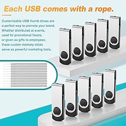 【Customized Logo】One sided or double-sided printing for your choice. Just upload your custom text or logo to amazon, we will create a digital proof for your approval. 10 Colors USB from 128MB to 64GB for your choice. Choose from various bulk quantities: 50pcs, 100pcs, 200pcs, 500pcs, 1000pcs. Customization methods: Screen Print, Uv Printing, Full Color, printing or laser engraving. 3-5 days of production after confirmation of logo, 7-10working days for shipping and delivering. 【Total 200pcs】Including 200 pack thumb drives, with 50 pieces free lanyards so the usb drive can be carried conveniently. The end of the jump drives with eyelet hole that can easily be attached in your key chain, backpack, lanyard.🔺Standard system is FAT32 system. Reformatting method: connect to the computer - click the right bottom and select format - click Start - done. Recommended format the drives as exFAT or NTFS when you transfer files larger than 4GB. 【Plug and Play, Storage Freedom】No need to install any software. Plug into the USB port of computer or other devices, then use it! Portable USB stick is suitable for storing, transferring and sharing digital data for work, school, business, daily usage or traveling. Such as music, photos, personal and documents, movies, pictures, books, programs, presentations, designs etc. Flash drive can be used in computer, TV, speaker, computer, notebook, car audio and other USB devices. 【Reliable Universal Drives with LED Indicator】Kepmem swivel USB flash drive support Windows 7/8/10/11/12/Vista/XP/Unix/2000/98/ME/NT Linux/Mac OS, etc. Compatible with USB 2.0, backwards USB 1.1. 🔺Reading speed is up to 15MB/s, writing speed is about 8MB/s, to ensure high-speed data transmission. This USB flash memory has a light that flashes when uploading / downloading files to it, which is located at the top, toward the end of the USB thumb drive. 【Appliation】Popular as Wedding/Party/Graduation/Company Meeting/Giveaway Promotion/Exhibition gift. Customizable USB thumb drives are a perfect way to promote your brand. Whether distributed at events, used for promotional favors, or given as gifts to employees, these custom memory sticks serve as powerful marketing tools. Schools, educators, computer retailers and any business with printed material will love these custom imprinted flash drives!