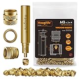 HANGLIFE M3 Heat-Set Threaded Inserts with Insert Tip, Heat Set Insert for 3D Printing Components and Plastic Parts with Soldering Iron Press Tool - Brass Metric Knurled Nuts (100 Pieces)