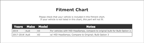 - Perfect Compatibility: Compatibility is key. Make sure to check our product specifications (in image gallery) to confirm that this OE replacement headlight bulb matches your vehicle's requirements. Get the perfect fit and optimal performance every time with our replacement parts.
