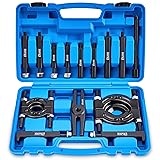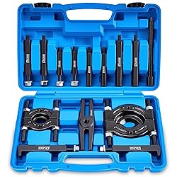 【HIGHLY PRACTICAL】 KOOPOOL 5-Ton capacity bearing puller set includes 2-piece bearing separator jaws of maximum opening (2’’, 3’’), 1-piece heavy duty forcing screw (7’’), 4-piece hex push-pull legs (4’’, 5’’), 4-piece hex extension legs (4’’, 5’’), 1-piece yoke (6’’ long), and two 5-3/5" L-type legs. All puller components are included to help you remove and install small and large wheel bearings on front and rear wheel hubs, gears, pulleys, axle shafts, and pinion on most cars effectively and fast. 【SUPERIOR VERSATILE】 Our bearing separator set Includes 2-piece bearing separator jaws for most small and large wheel bearings and gears. The 8-piece push-pull legs and extension legs fit most shafts of different length. This tool set is ideal for pulling gears, pulleys, bearings, axle shafts, pinion, steering wheels on cars, vehicles, ATVs, and light trucks. 【PREMIUM MATERIAL】This gear puller set is built with rugged drop-forged construction and made of heat-treated high hardness 45# carbon steel. Coated with black oxide finish for ultra strength and long durability to withstand rugged jobs on stubborn bearings and gears. 【EFFECTIVE OPERATION】This wheel hub axle puller set Includes two most widely used bearing separator jaws, help to complete a variety of bearing pulling jobs, and the 5-ton-capacity and heavy-duty industrial grade bolts ensure tools will not bend and break during operation. It takes little effort to be assembled by professionals or do-it-yourself. 【EASY STORAGE】 Come with heavy duty plastic blow-molded carrying case with handle and latches for safe transport, simple storage, and quick organization.