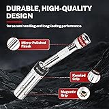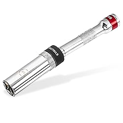 Specification: This spark plug socket features a 361° swivel, 5/8" x 6" length magnetic spark plug socket with a thin wall design. It is designed for use with a 3/8" drive ratchet, torque wrench, breaker bar, and similar tools. Purpose: This specialized magnetic spark plug socket is specifically designed for safely exchanging spark plugs in a variety of engines, including those found in automobiles, motorcycles, and marine vessels. It ensures that the spark plug is installed or removed without any damage. Magnetic Insert: The spark plug socket includes powerful integrated magnets that securely hold the spark plug in any position. This feature guarantees easy assembly and disassembly during spark plug replacement tasks, minimizing the risk of dropping or damaging the plug. Design Features: The spark plug socket's swivel and extended design allows it to navigate around obstructions and provides superior access to hard-to-reach spark plugs. Its thin wall construction is specifically designed to fit into tight spaces, offering increased accessibility where conventional sockets may struggle. Material: This spark plug tool is made from heat-treated chrome vanadium steel, ensuring durability and strength. It features a full polish chrome finish that resists rust and corrosion and is easy to clean. The socket also has laser-etched size markings for quick and easy identification, ensuring you can always find the right tool for the job.