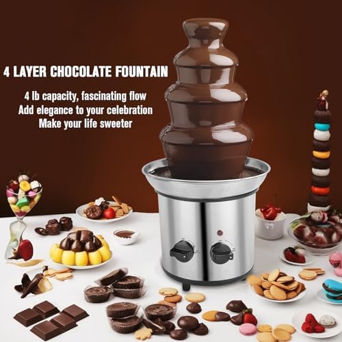 Chocolate Fountain, 4 Tier Chocolate Fondue Fountain Electric Melting Machine for Parties, Nacho Cheese, Ranch, Sauce, Wedding, Chocolate Fountain Machine with 4pcs Stainless Steel Forks(4 LB)