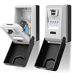 HIGH QUALITY: The key lock box wall mount is made of high-strength zinc alloy and stainless steel, which is rust proof and cut-resistant, sturdy and durable.It can withstand hammering, sawing and prying to ensure your privacy and safety MULTI-FUNCTION DESIGN: The biggest advantage of the lock box is equipped with a light, even in the dark environment can see the code numbers easily take out the key; Large capacity of the key box, multiple keys and access cards can be put into the key box WIDELY USED: The original code of the key box is "0-0-0-0-0", providing debuggable 4-digit code. Suitable for a variety of places, such as companies, factories, garages, vacation homes, schools, etc. EASY INSTALLATION: Included all necessary mounting hardware (4 screws, 4 nylon expansion plugs and instructions) . Simply insert the screws and plastic expansion plugs and drill them to the wall or other hard surface and make sure it is mounted tight EXCELENT SERVICE: If the lockbox has any quality problems, please let us know by email, we will reply you and deal with it within 24 hours.