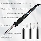 - Features: 1. Fast heating up: Soldering iron design of thickened double-sided circuit board, express heating, achieves ideal working state, LED digital display, quickly adjusts the required temperature, all of which make your work convenient. 2.High quality: Soldering iron handle is made of heat-insulating silicone material, which is not only heat-resistant but also prevents slipping. The soldering iron head is made of high-quality material, which is resistant to oxidation and has a long service life. 3. Convenient to use: Soldering iron kit is rich in content, including 1 electric soldering pen, 5 welding heads, and 7 different lengths of M2 M2.5 M3 M4 M5 M6 M8 heat set insert tips, fully meeting your work needs. It is lightweight and easy to operate. Specifications: Color: Black Material: Metal Package includes: 1 Electric Soldering Pen 5 Soldering Tips 7 Heat Set Insert Tips Please note: 1. Due to different screens, the color may be slightly different. 2. Please allow 1mm-2mm differences due to manual measurement and reconfirm the length before ordering, thank you for your understanding! 3. We will do our best to provide better products. If you need any help, please feel free to contact us.