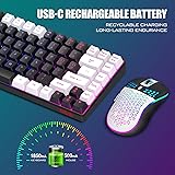 RedThunder K84 Wireless Keyboard and Mouse Combo, Rainbow Backlit Rechargeable Battery, 75% Layout TKL Ultra Compact Gaming Keyboard & Lightweight 3200 DPI Honeycomb Optical Mouse (Black-White)
