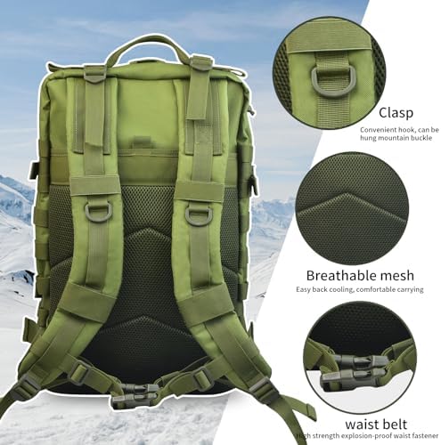 - The design military backpack 1- uses thick hand straps with reinforced seams that are not easy to come off, 2- high-quality buckles and materials open and close smoothly, 3- We use breathable and reinforced decompression shoulder straps to protect your spine, The shoulder straps can be hung with carabiners. Small items such as D-shaped buckles can be used to hang sunglasses, life-saving whistles。