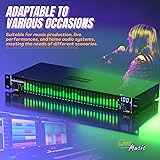 Dual Channel Synchronized Control: DSP equalizer allows for precise adjustment and control over two channels simultaneously, enhancing audio performance 31 Band Digital Equalizer: spectrum analyzer provides detailed and customizable sound shaping across a wide frequency range for optimal audio quality 1U Ultra-Thin Chasis: DSP equalizer features rugged 1U rack mount, large digital screen, and versatile interface options (TRS6.35/RCA/XLR balanced interface) Stereo Graphic EQ: equalizer delivers accurate equalization for stereo sound systems, ensuring balanced and immersive audio playback Noise Reduction: audio equalizer effectively reduces unwanted background noise, enhancing clarity and fidelity in audio output LED Spectrum Display: digital equalizer offers real-time visual feedback of audio signals, making it easy to monitor and adjust settings for optimal performance PC Control: stereo graphic equalizer allows users to connect the equalizer to a computer for control point output