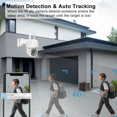4K Outdoor Security Camera, 8MP 2.4G/5G WiFi &Wired Cameras for Home Security, 360° View Pan Tilt IP Surveillance Camera with Human Detection, Auto Tracking,Two Way Talk, Full Color Night Vision