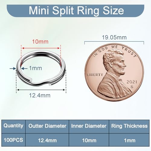 - Small Split Key Ring List: 100 Pack of Silver Split rings,Outter Dia. 12.4 mm,Inside Dia.10 mm,Wire thickness 1 mm. Please note the size of the keyrings, these are Mini keyrings
