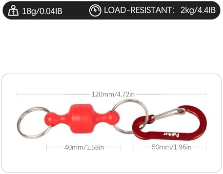 - 1.The magnetic keychain release is made of Aluminum alloy and stainless steel,not easy to break,the fly fishing gear magnets are very strong and have no problem staying together even with the weight of a fly fishing net down on them,didn't accidentally come loose through the whole day, you can use it with confidence.