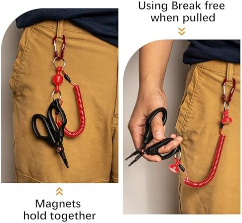 - 2..Fly fishing lanyard will break free when pulled allowing cord free handling of attached device. Multi functional uses more than a net release. Ideal for trout net and fly fishing gear tools holding, magnetic keychain and detachable key chain holder .
