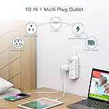 - 9-IN-1 Wall Outlet Extender, One Is Enough - 6 AC widely outlets, 2 USB-A and 1 USB-C ports, charge up to 9 electrical devices simultaneously. - 180° Rotating Plug for horizontal or vertical wall sockets, easy to install and access outlets. - 3-Sided Compact design with small size, 1.7 inches spaced outlets fit big adapters without blocking, takes up less space on your desk or luggage. - USB-C ports up to 3A per port, charge Up to 30% faster. Fast smart USB charging ports automatically detect charging devices and deliver optimal charging speed.