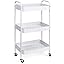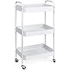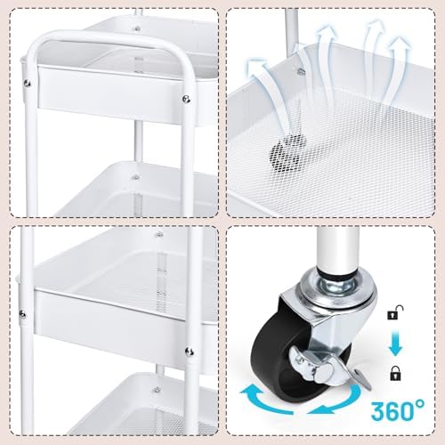 3-Tier Metal Rolling Utility Cart with Wheels, Space-Saving Storage Organizer for Kitchen, Bathroom, Office and Dorm, Easy Assembly, Lightweight, White