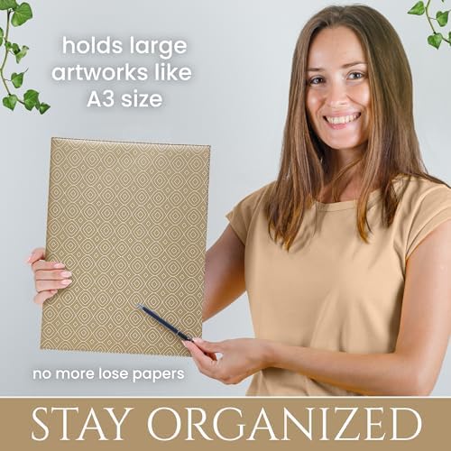 - HIGHLY STRUCTURED & SUPERIOR SAFEGUARDIN: Excellent protection brings our art portfolio book, with durable PU leather material, offers a sophisticated presentation for your artistic journey. Artwork storage design not only keeps your documents flat and wrinkle-free but also allows for swift and easy insertion or removal of files. Elevate your presentation, combining style and functionality. Make your artistic endeavors stand out.