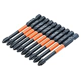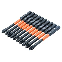 - FeaturesImpact Tough #2 Phillips Bit — Impact Shock Absorbent Zone stands up to impact drivers. It can be handle a new generation of high torque impact drivers.more powerful than ordinary cheap phillips head screwdriver set, longer life.Standard Sizes--These 10 packs of 2 Philips Bits, 2 inch long, fit wood screws from #5 to #9, metric machine screw sizes M3.5, M4, M5, and SAE machine screw sizes #5 to #10. 1/4" hexagonal handle, compatible with most electric drills, suitable for many home work and industrial applications. Magnetic Phillips Bit--These high hardness & magnetic Phillips bits, Heat-treated manufacturing for stronger bit,magnetized sufficiently that screws can be easily fixed and removed, do not decay magnetic after multiple uses, ensuring long-lasting. TS2 Alloy Steel--using high quality solid tool steel TS2 alloy steel, wear resistance and strong impact resistance, hardness reaches 63HRC, can be used for high intensity conditions, Phosphorized black surface to prevent rust. 1/4 Hex Shank — 1/4 inch hex shank, fit for electric screwdrivers, hand screwdrivers, electric drills, air drills and impact drill etc.with storage case,convenient storageSpecificationsMaterial:TS2 Length:2-3/4 inch#2 Phillips BitPackage include 10 x PH2 High Torque Impact Driver Bits1 x plastic storage case