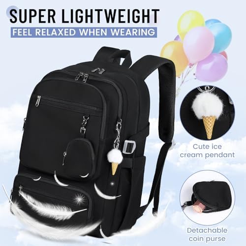 Laptop Backpack for Women Teen Girls Cute College Backpack 15.6 Inch Bookbag Casual Backpacks for Travel Work Commuter, Black