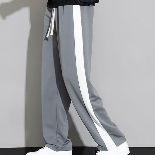 Generic Mens Casual Pants Fashion Lightweight Loose Lounge Pants Striped Straight Drawstring Workout Pants Daily Wide Leg Pants