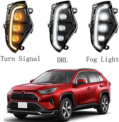 Pair High-profile Version LED 3 Eyes Daytime Running Lights DRL Amber Turn Signal Lamps Fog Lights Assembly Compatible With Toyota RAV4 2019-2024 Replaces TO1038223 TO1039223