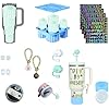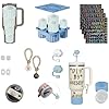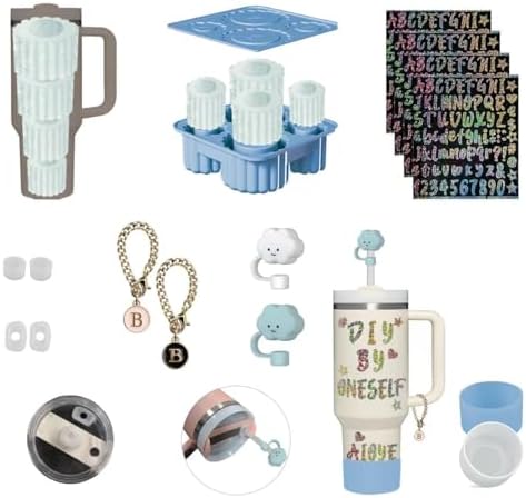 Cup Accessories Set for Stanley, Including 1 * Silicone Ice Cube Tray, 2 * Silicone Boot, 2 * Straw Cover Cap, 2 * Letter Charm Accessories, 4 * Spill Stopper Set, 4 * Letter Stickers (Blue)