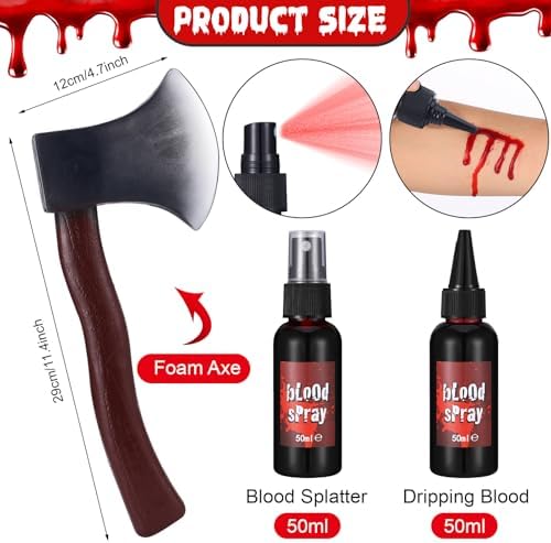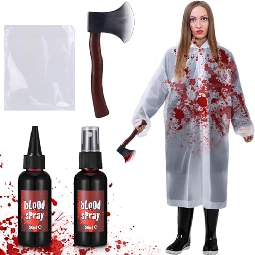 4 Pcs Halloween Costume Accessory Fake Blood Spray Dripping Blood Gel Raincoat Foam Ax Cosplay Party Scary Horror Killer Dress Up for Adults