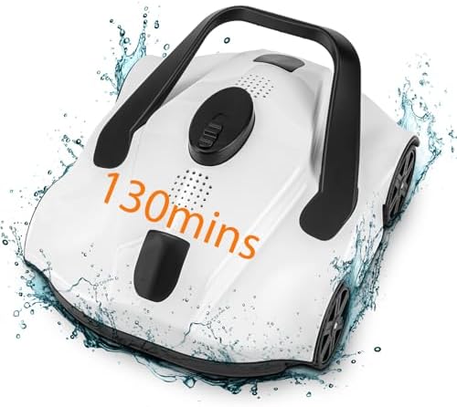 - 【130 MINUTOS DE TIEMPO DE FUNCIONAMIENTO LARGO Y CARGA RÁPIDA】El limpiador robótico de piscina se carga completamente en solo 3 horas y ofrece 130 minutos de limpieza de primera calidad. Ideal para piscinas above ground planas y piscinas enterradas sin pendientes y escalones, cubre un área de trabajo máxima de 1076 pies cuadrados (100m²). ATENCIÓN: Este limpiador robótico de piscina es adecuado para piscinas con fondos planos y sin pendientes.