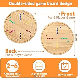 【High Quality And Exquisite Products】This board game is made of high-quality solid wood material, which is sturdy and durable. The game board is exquisitely crafted with clear printing, and the top layer also has a waterproof protective coating to protect the board from fading. Our marble beads are also made of natural high-quality marble as raw materials. They have bright colors, good glossiness, and a very beautiful appearance. 【Perfect Gaming Experience】Our product is fully equipped, including a large game board of 20 "x 20" x 0.8 ", equipped with 30 marble chess pieces in 6 colors, and 6 dice. We have prepared all the necessary items for the game for you, hoping to give you a perfect gaming experience. We have also prepared storage bags and color box packaging for the product, which can better store and prevent loss. 【Two-Sided Designs】Our game board adopts a double-sided design, which makes reasonable use of space. On the front is a 6-person marble game, and on the back is a 4-person marble game. It can be used for both family parties and friend gatherings. It will bring you more fun. 【An Excellent Choice For Giving Gifts】Our product is suitable for all ages and is a very classic game that has always been popular. Not only is it perfect for buying and playing with family and friends, but our exquisite packaging also makes it perfect as a gift for gaming enthusiasts. 【After-Sale Service】Our products are checked for their condition before shipment, and packaging with pearl cotton in color boxes can better protect the products. We are committed to providing you with the best shopping experience. If you have any problems with receiving the goods, please do not hesitate to contact us, and we will patiently solve it for you.