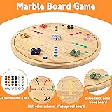 Double-Sided Wahoo Marble Board Game Set - Solid Wood 4-6 Player Family Game with 24 Natural Marble Pieces, 6 Dice & Waterproof Coating - Luxury Wooden Strategy Game