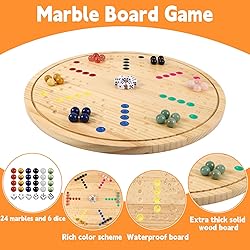 - This product includes a 20 inch solid wood wahoo board, 24 marble marbles (6 colors) and 6 dice, as well as a marble dice storage bag with detailed game instructions This board game uses real marble to make marbles, and compared to plastic marbles, its advantages are providing a better user experience and more beautiful colors. In addition, these marbles have a longer lifespan