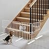 - 【Perfect for Puppies】 Opening size: 48" W x 17" H. It’s not too big and is perfect for separating the cat and dog.Works great straight out of the box. Very appropriate for smaller dogs who don’t jump over things.It is easy for people to get in and out; Weight: 5 lbs. More pieces of dog gates can be as Pet Fence, Room Dividers, and Pet Pen.