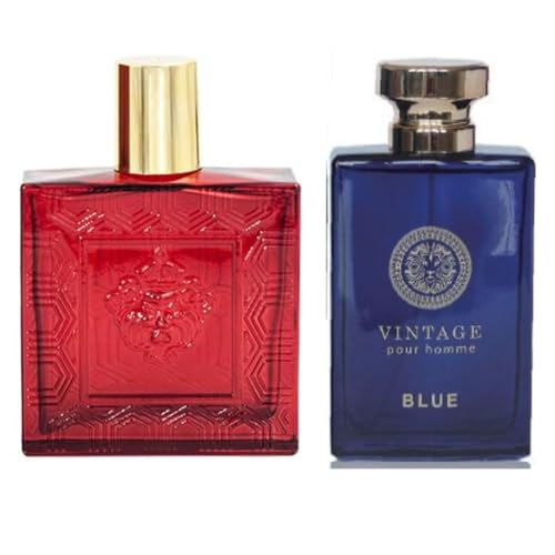 TWISHA Vintage Heroes Red & Vintage Pour Homme Blue Cologne for Men 3.4oz/100ml, eau de parfum, (Our Impression of Red Flame & Dylan Blue)