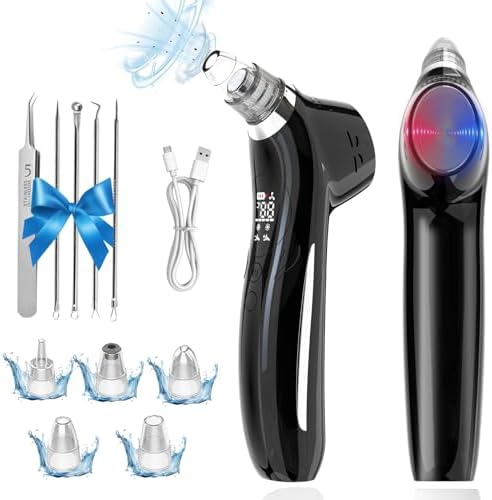 Blackhead Remover Vacuum Face Suction Pore Cleaner with Hot&Cold Compress Positive&Negative Ion Massage Nose Whitehead Remover Pimple Sucker with 5 Probes Pore Extractor Tool… (Black)