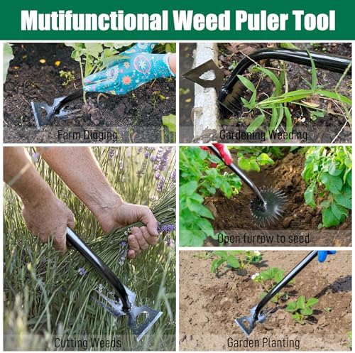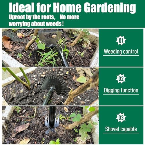 - - Dual-Purpose Gardening Tool: This Gardening Hand Weeder Tool is essential for weeding, digging, and soil excavation tasks. It provides a worry-free solution for weed removal in narrow spaces and eliminates the need for manual weeding.