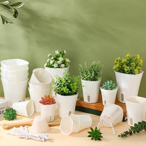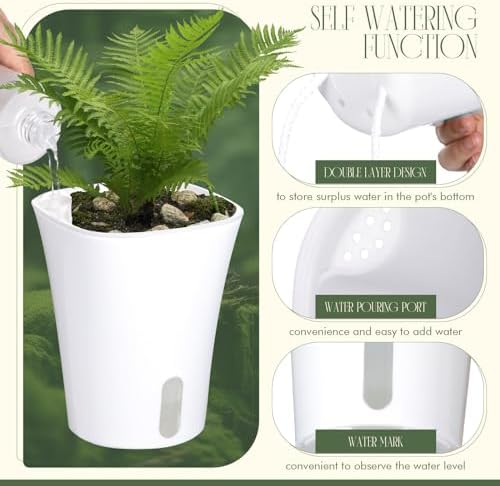 - Self Watering Design: featuring self watering system, these plastic planters make plant maintain easy, making them ideal for individuals with a busy lifestyle; They have an incorporated reservoir that ensures your plants get the right amount of water they need to thrive so you never worry about forgetting watering or watering too much, self watering planter helps your plants grow healthily