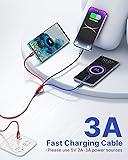 【Humanized Designed 3 in 1 Cable】 One universal Multi charging cable meets many daily needs! micro usb and type c and lightning port. It can charge all cell phones on the market. Perfect for home, office, travel, mobile power or business use. (It can only be used for charging, not for data synchronization.) 【1FT Multi Charger Cable - PERFECT LENGTH】The nylon braided 3 Multiple USB Cable is very easy to fold and fit into handbags, laptop bags, pockets, etc., super easy to carry. Not only can you save your space, but you don't have to worry about the Multi USB cable getting knotted and tangled. 【Multifunctional Cable】3 in 1 3. 5A Nylon Braided High Speed Multi Charging Cord, Compatible with Mobile Phones 15 14 13 12 11 Pro Max / 15 14 13 12 11 Pro / 14 13 12 Mini / 15 14 Plus / 15 14 13 12 11/ SE / Xs Max / Xs / Xr / X / 8 Plus / 8 / 7 Plus / 7 / 6s Plus / 6s / 6 Plus / 6 / 5 / 5s, Pad Air / Pro, Pod / Alternative Nano 7 / Samsung Galaxy S22+ / S22 / S21+ / S21 / S20+ / S20 / 210+ / S10 / S9+ / S9 / S8+ / S8 / Note 7 8 9 10 20, Huawei, HTC, LG, Sony, Google Pixel, Moto, PS 4/5 and other Android devices for charging most cell phones. 【Super Fast Multi Charging Cable】We have upgraded the chip of this Multiple USB Cable, and through professional testing, it can actually charge up to 3.5A, which is 20% faster than the cables on the market. And it automatically disconnects from the power supply when fully charged, maximizing the protection of your phone battery. 【Long Lasting and Durable】The flexible nylon braided cable will not knot and is not easy to break. The service life is more than 10,000 times. In addition, high quality heat-resistant aluminum alloy terminals are used to improve reliability and durability. 【What You Get】We provide you 2Pack 1ft fast multi charging cables with 18 months worry-free period and 24/7 friendly customer service, if you have any questions. We will solve your problem within 24 hours.