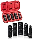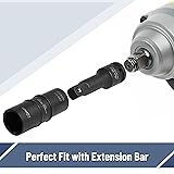 Bates lug nut impact socket set includes 4 dual-ended sockets, a 3-inch extension bar, and a durable storage case, making it a versatile and complete solution for automotive and mechanical tasks. Constructed from premium CR-MO steel, these impact sockets are heat-treated for superior strength and durability, ensuring long-lasting performance under heavy-duty conditions. The dual-end design provides multiple size options in a compact form, including 17mm, 19mm, 21mm, 22mm, 3/4", 13/16", 15/16", and 7/8", offering compatibility with a wide range of lug nuts. The set includes a 3-inch extension bar for added reach and convenience, making it easier to access hard-to-reach areas during tire changes or repairs. Packed in a sturdy storage case, this set ensures easy portability and organization, making it ideal for professionals and DIY enthusiasts alike.